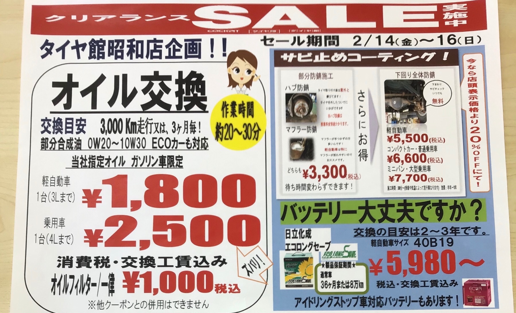 オイル交換がお得なオイルデー みんなは入ってる タイヤ館アプリ スタッフ日記 タイヤ館 函館昭和 タイヤからはじまる トータルカーメンテナンス タイヤ館グループ