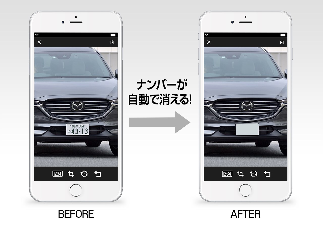 クルマのナンバーが一瞬で消せるアプリ Automo Camera
